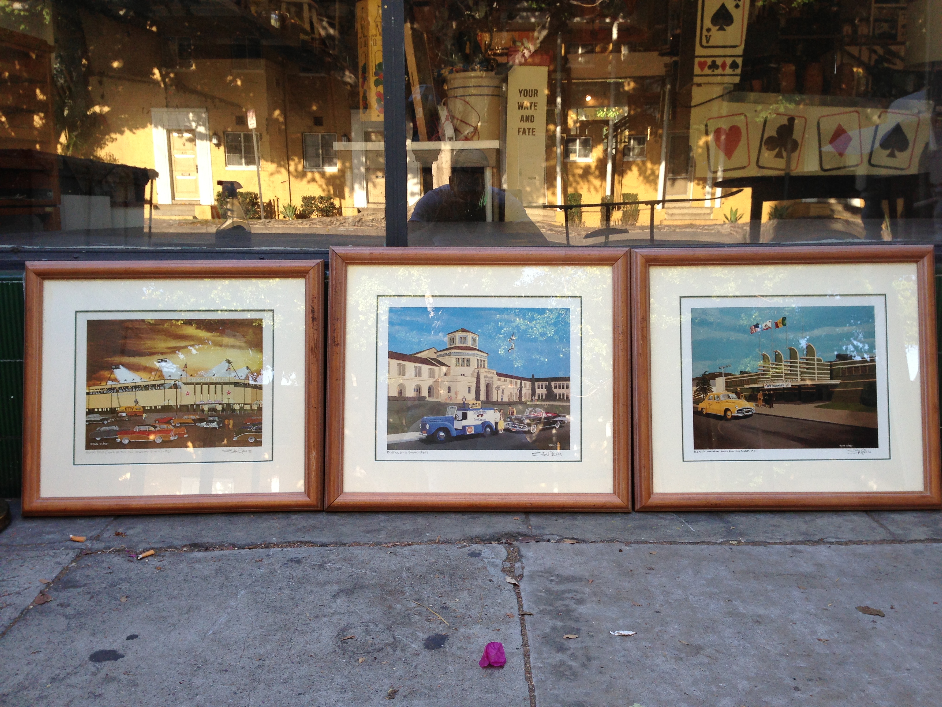 3 framed 50’s los angeles landmarks artwork by stanley cline