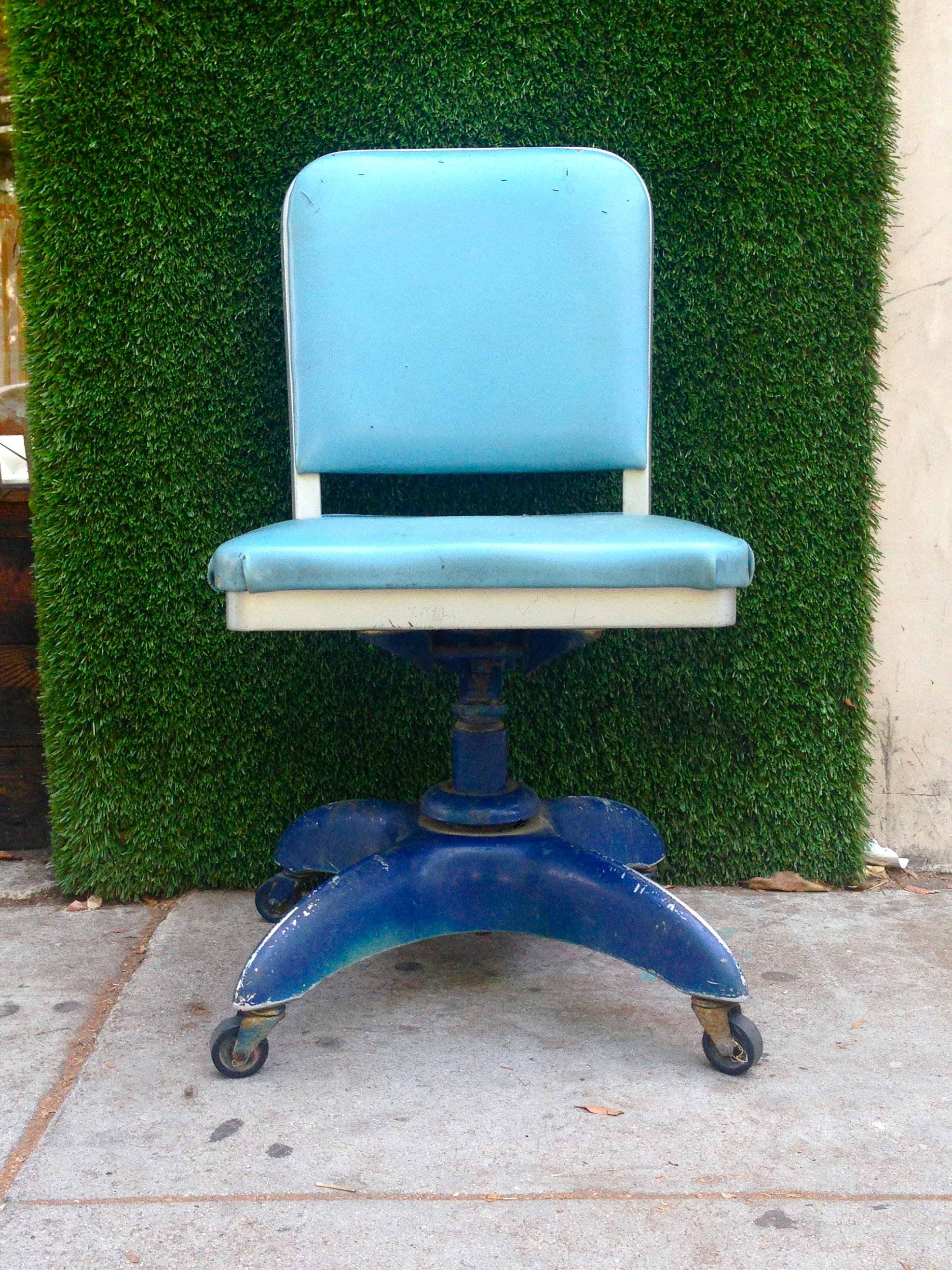 blue industrial desk chair