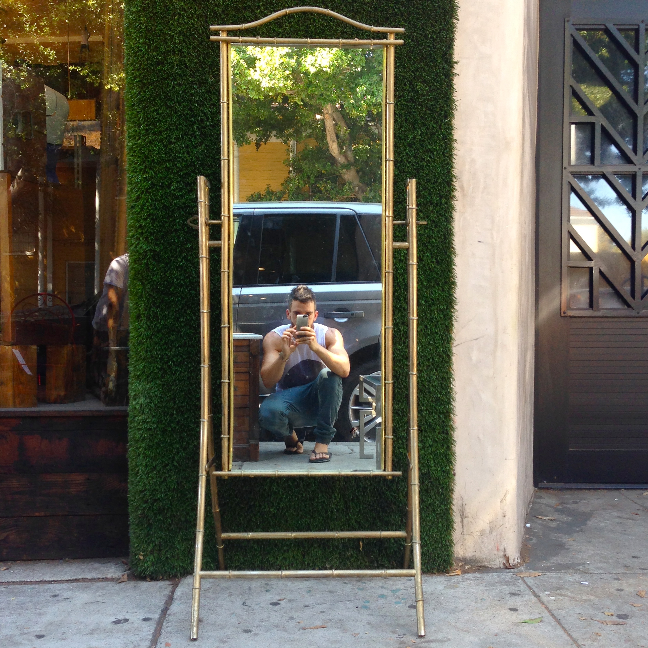 free standing full mirror with brass frame
