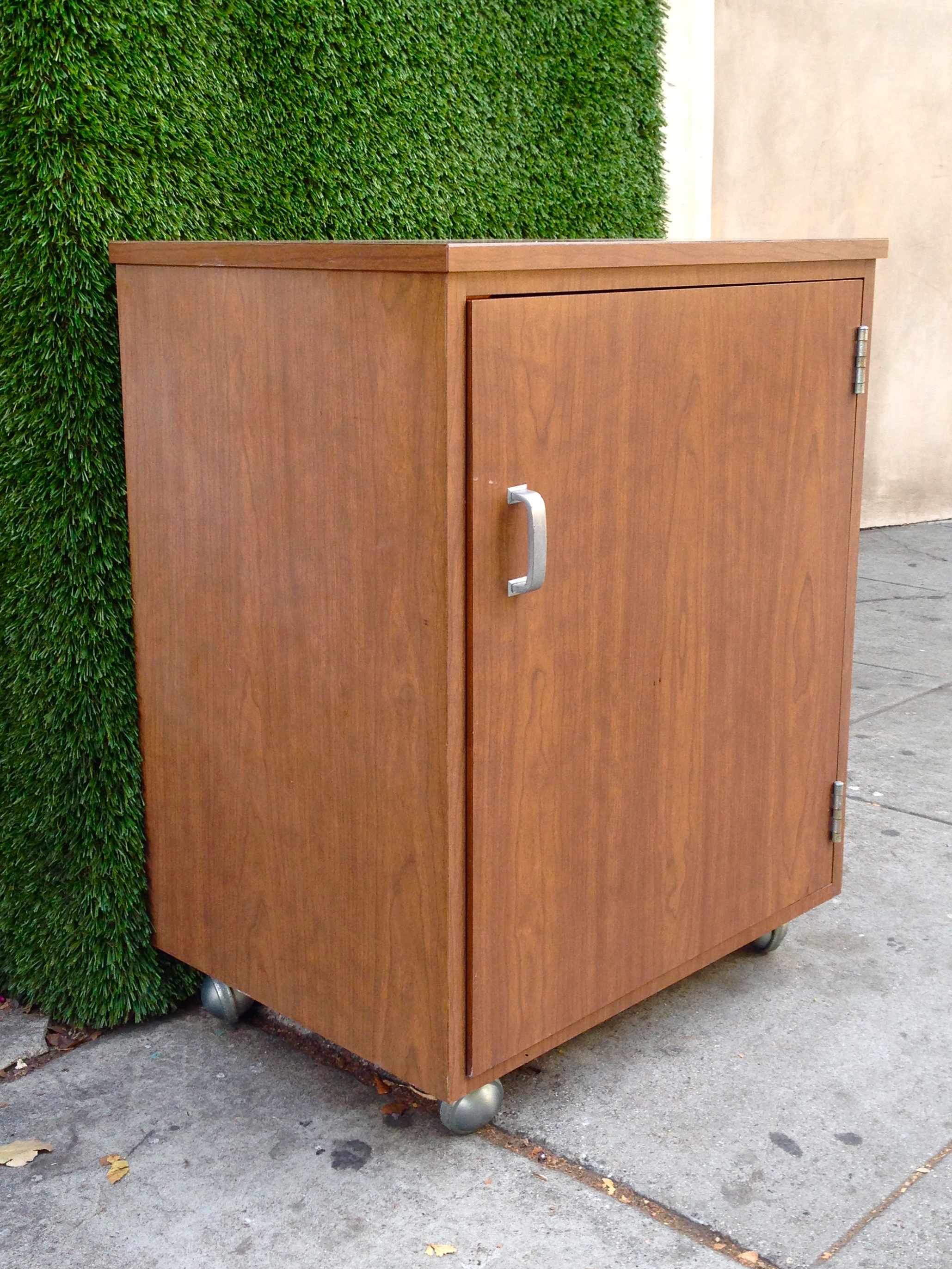 mid century small cabinet on wheels
