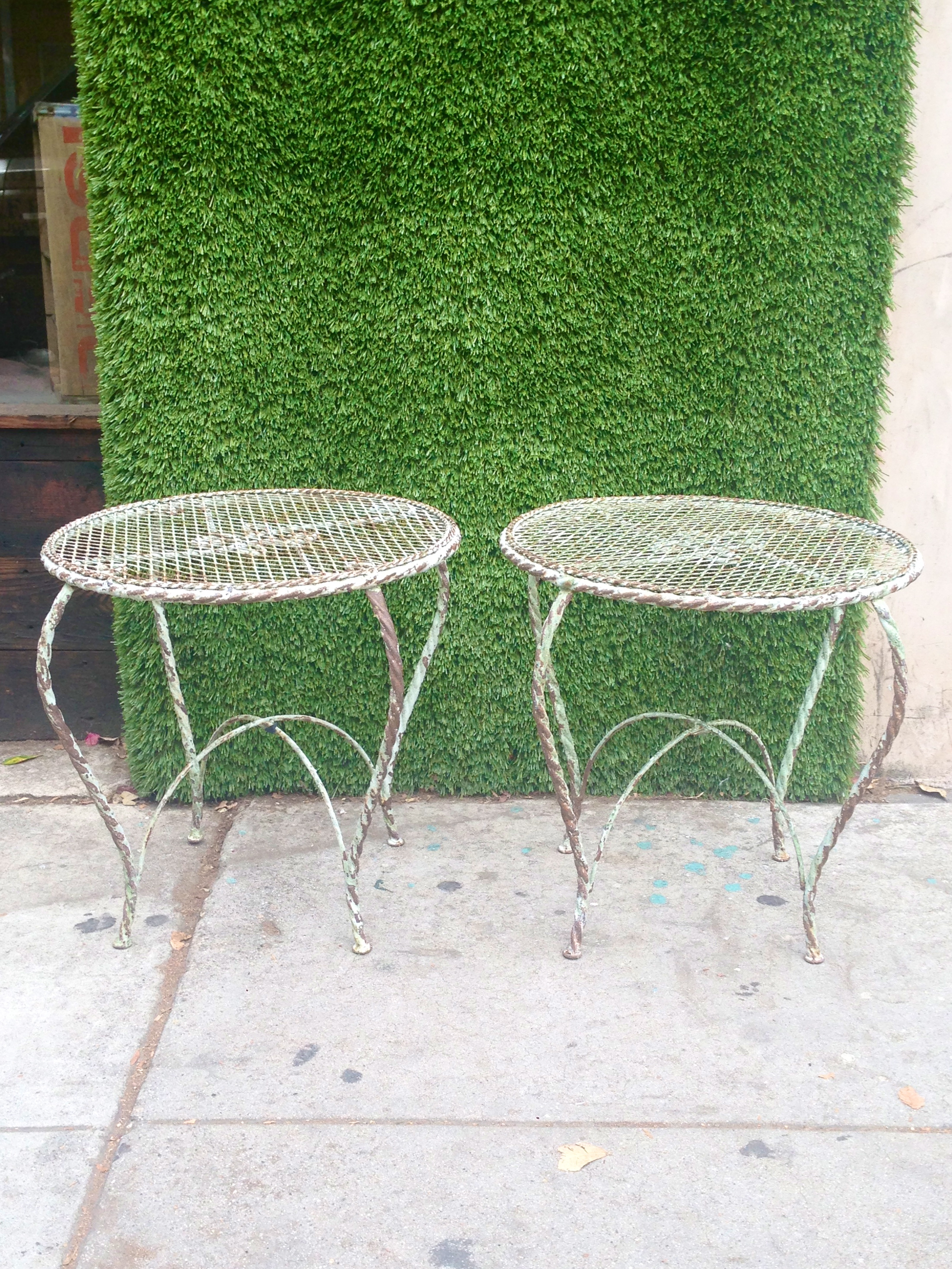vintage metal w/graded top end tables